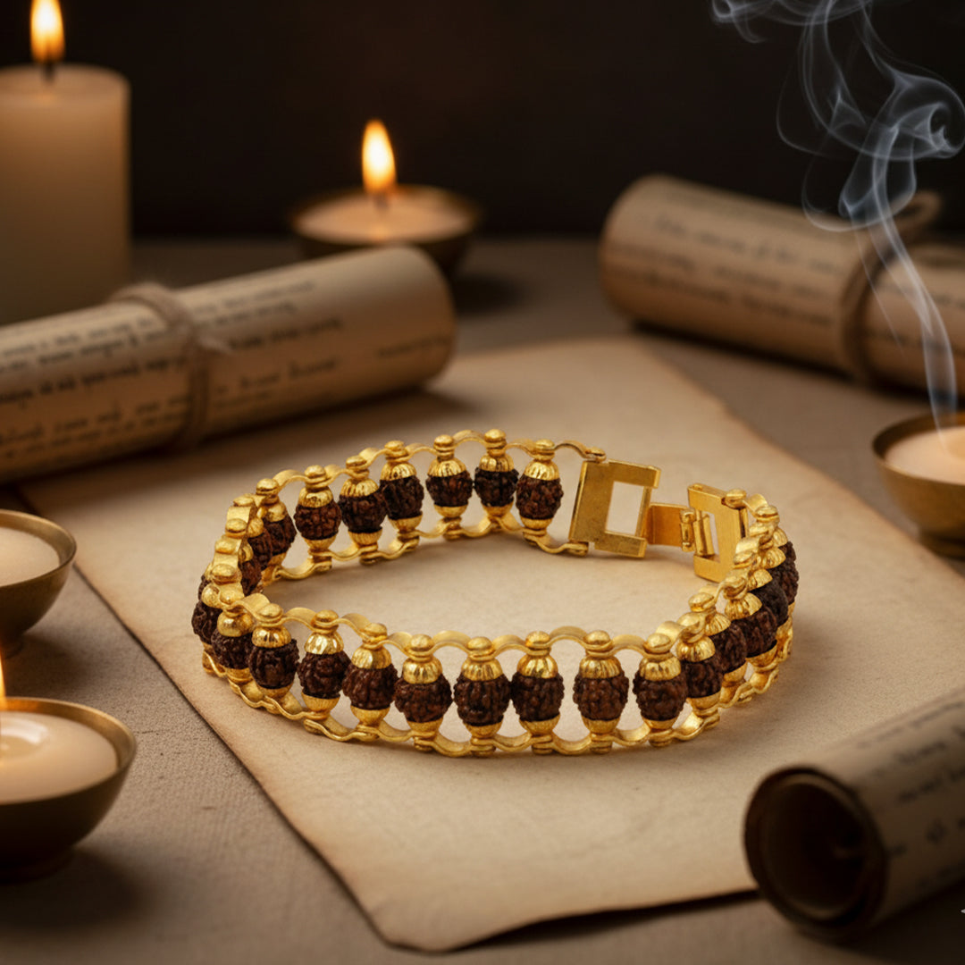 Gold Plated Premium Rudraksha Chain Bracelet – various bead counts.